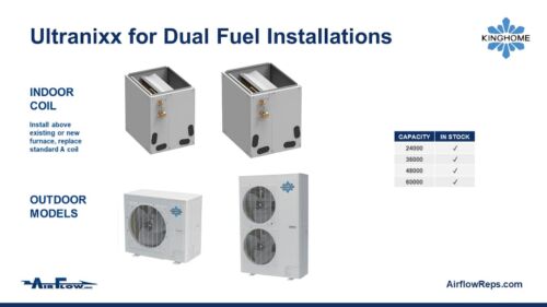 This Kinghome low ambient lineup adds a few new problem-solvers to your toolbox, one that can get you out of a bunch of gas or hydronic piping, and without a full electric backup.