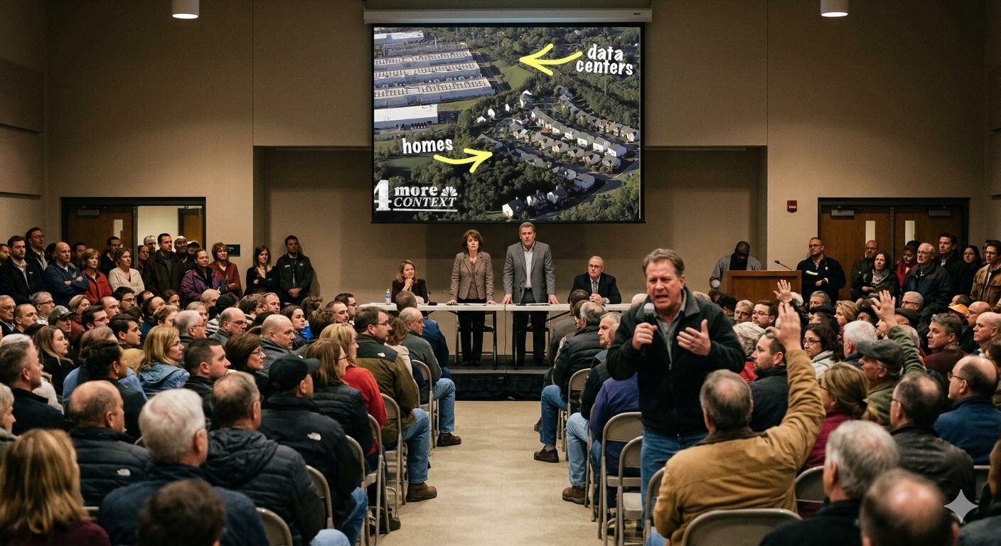 Suburban City Hall. Evening. March. The hint of real spring is in the air, but the mood is far from joyous.